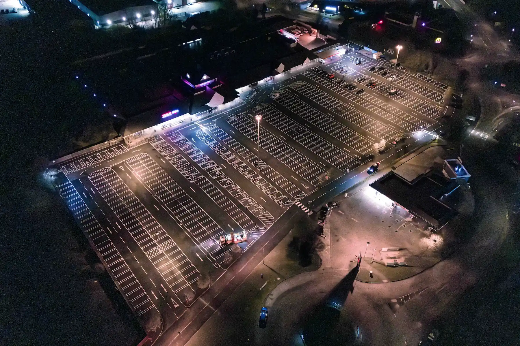 The project required careful planning, phasing and coordination to maintain safe access throughout. Works included resurfacing, layout changes and line marking, delivered to programme while supporting day-to-day site activity and trading requirements.